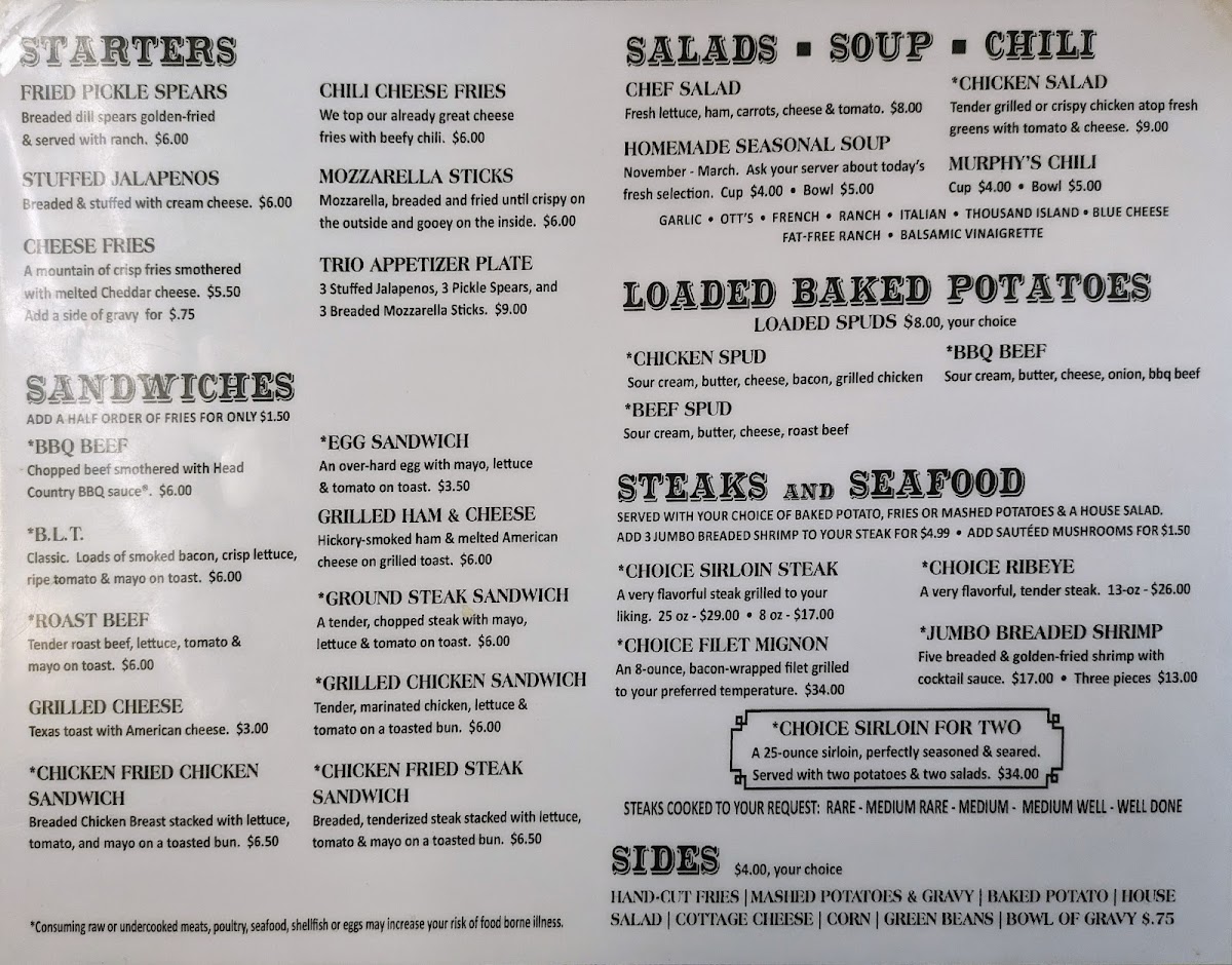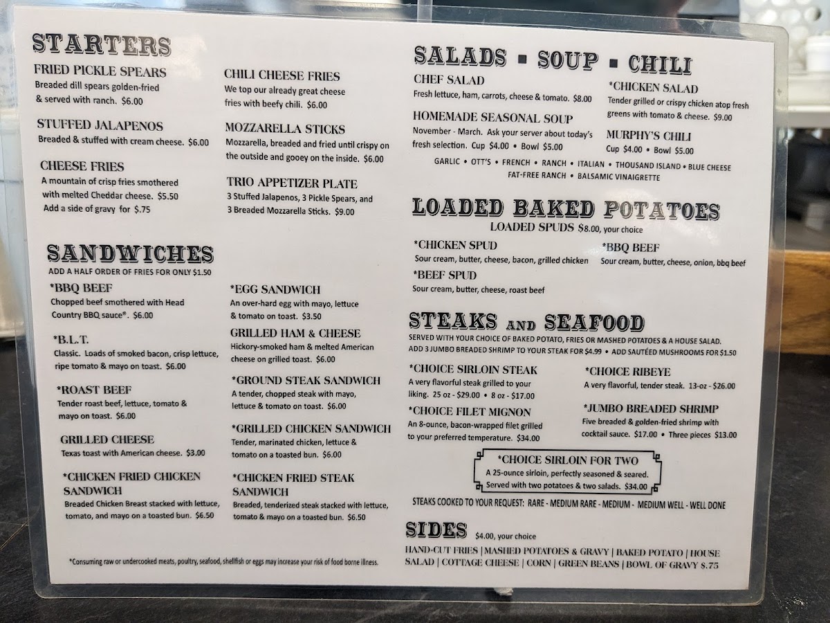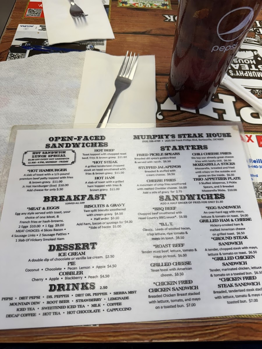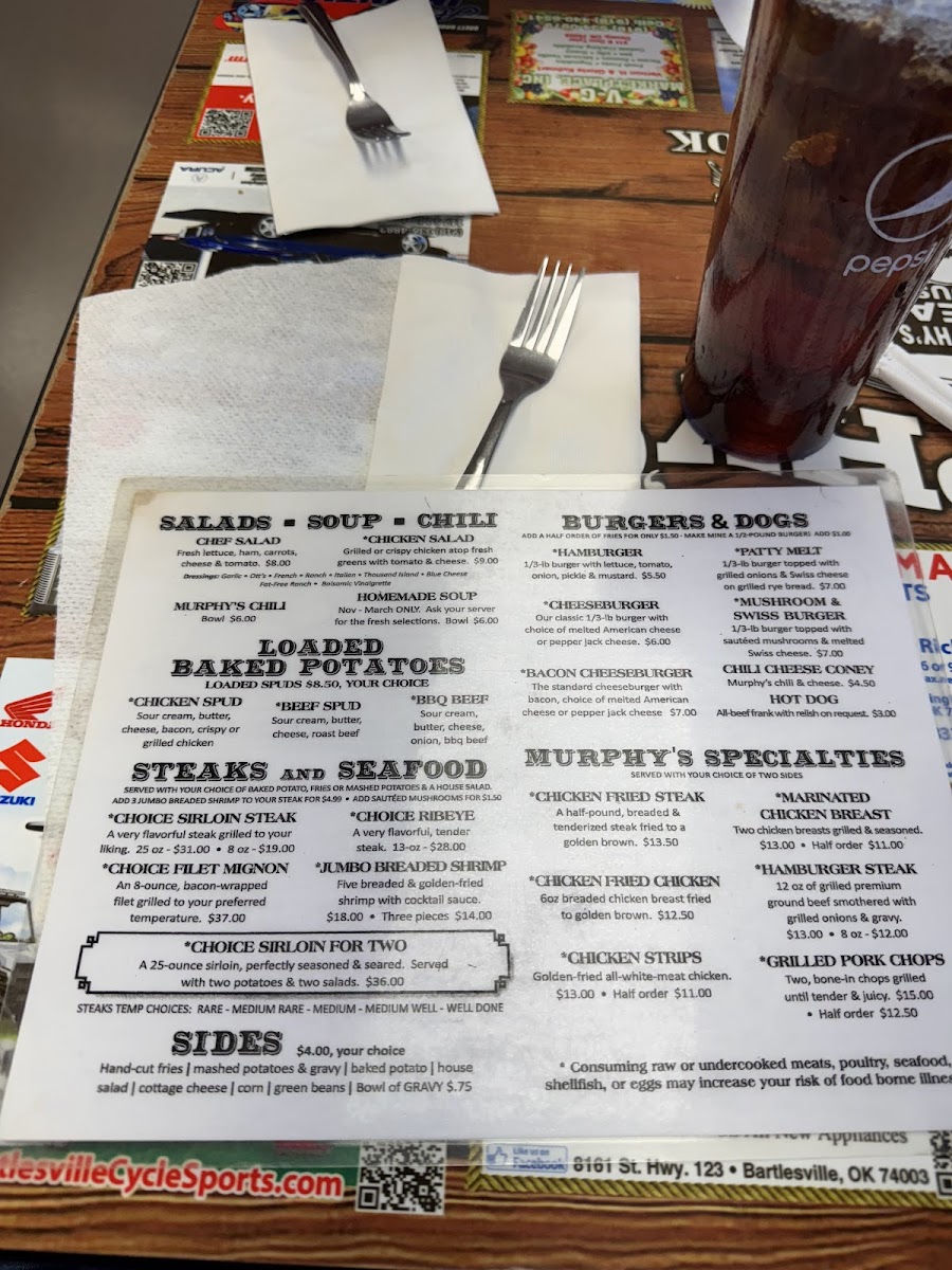 Murphy's Original Steak House, nestled in the heart of Bartlesville, Oklahoma, is a cherished landmark for steak lovers and those seeking authentic American comfort food. From the moment you step inside, the warmth of a family-owned restaurant shines through, wrapped in an atmosphere that's casual yet rich with history. Despite the modest, old building, it's the flavors and service within that truly impress.